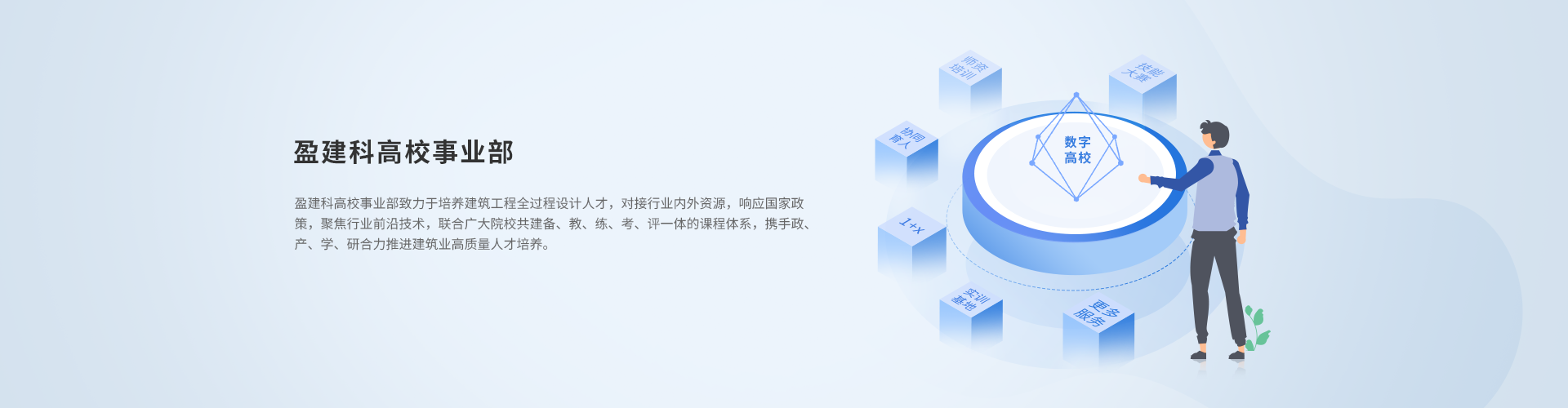 围绕建筑结构、装配式、BIM、绿建节能碳排放、桥梁、建筑、机电等专业方向,基于课程教学的实操环节、课程设计、毕业设计等环节,与院校合作共建人才培养实践平台,深度结合理论课程,拓展实践资源,面向给全体学生,关注学习成效,优化人才培养全过程。