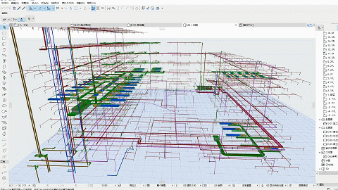 该项目的设计过程分为建筑场地分析、建筑前期设计、楼层设置及轴网绘制、建筑结构及主体建立、建筑排水电气建立、建筑暖通管线综合设计、建筑周边环境补充7个步骤。CQUBIMer队用BIM软件建立建筑系馆信息模型,并以建筑模型为基础,优化结构专业、暖通专业、给排水专业的设计,三维数字化建筑在前期排除建筑、结构、管网之间的碰撞,实时把控建筑施工,及时解决施工过程中的问题,达到降本增效的目的。