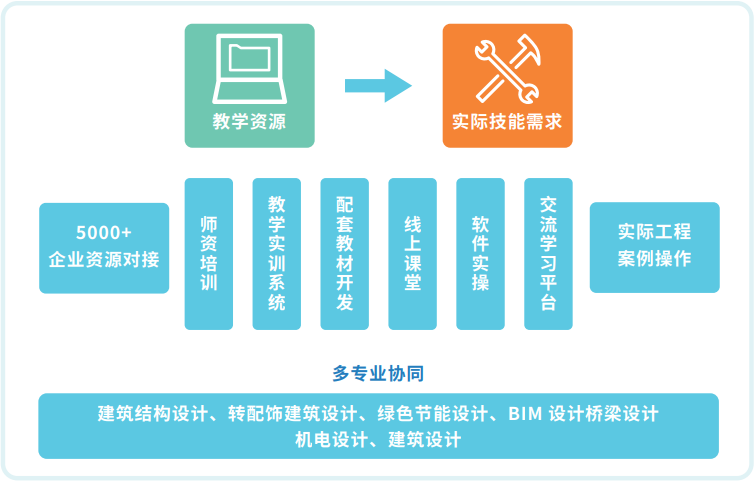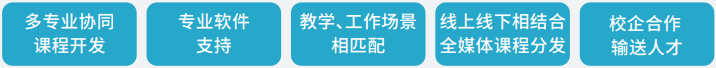 师资培训、实训室建立、教材编写、线上课堂、软件实操、课程讲解,对接企业、真实案例、就业对接、实际工程、实习安排